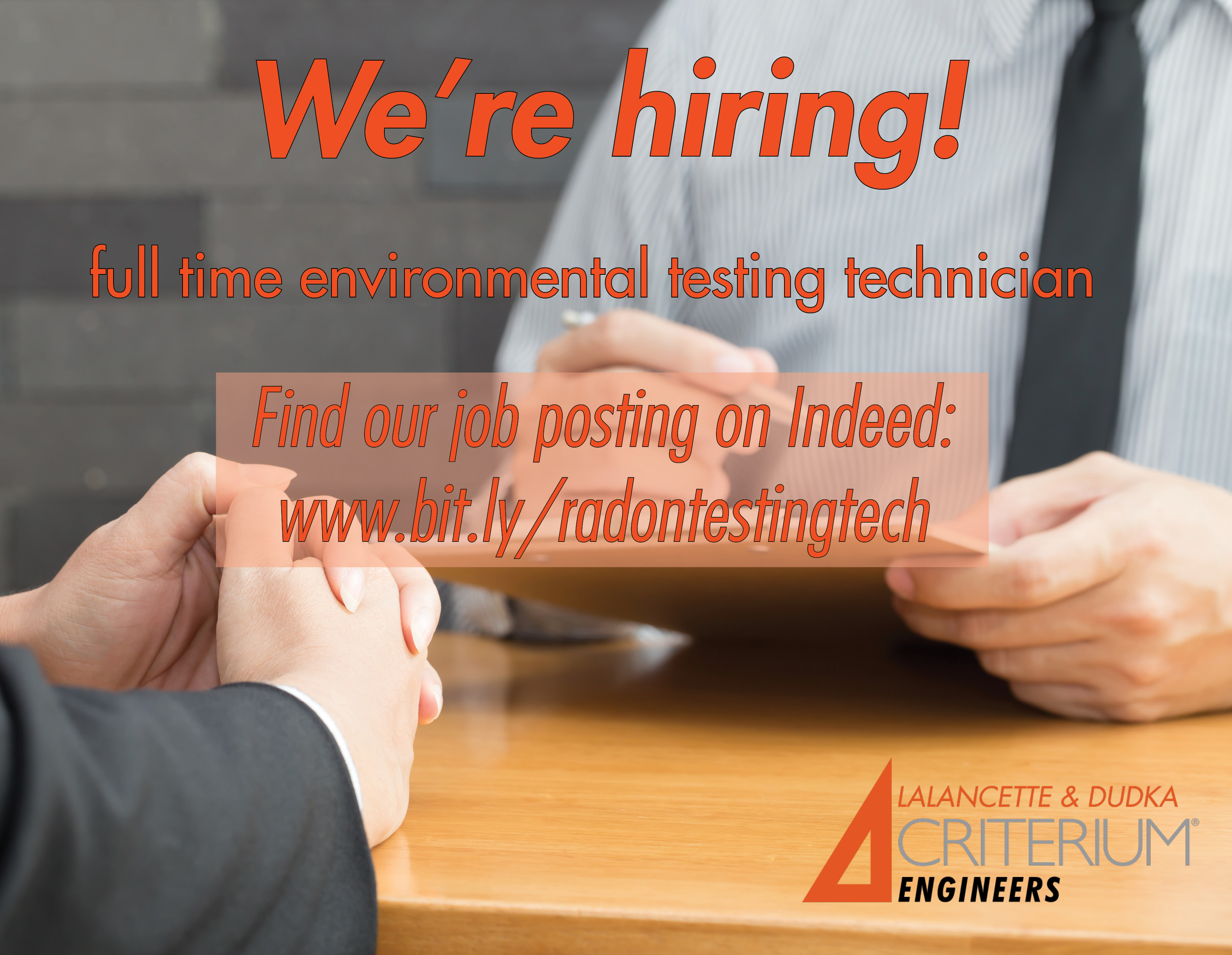 We’re Hiring! We’re looking for a full time environmental testing technician! Check out our job posting on Indeed! APPLY TODAY!